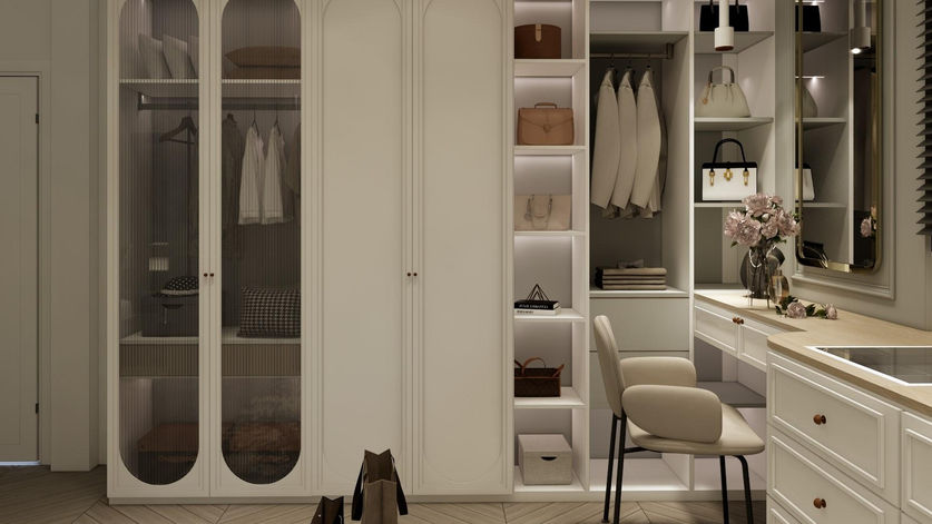 A space that truly reflects your refined individuality — designed to be more than just a wardrobe, but a statement of taste and meticulous attention to every detail. Thoughtfully organized with a custom-built wardrobe system that brings order, elegance, and functionality together in perfect harmony.